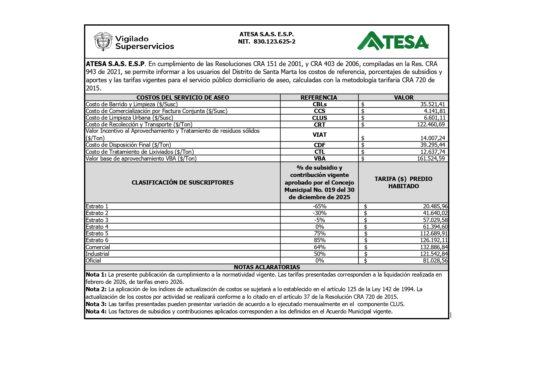 Te invitamos a conocer las tarifas correspondientes al servicio de aseo en Santa Marta (Actualización: 13/02/2026):
